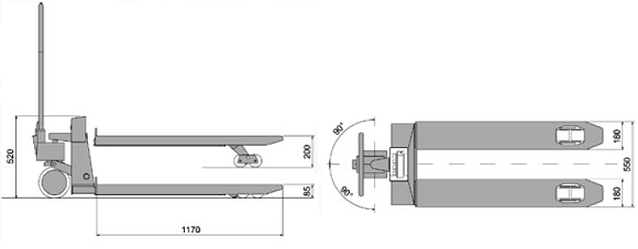 Dimensiones of the Pallet Truck Scale PCE-PW 2000