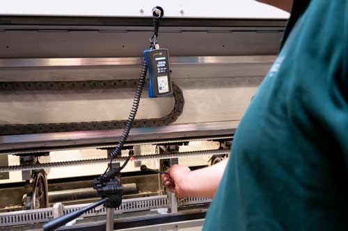aligned. With the help of the belt tension gauge, the tension force (trum force)